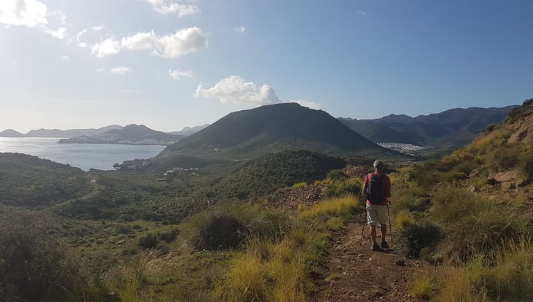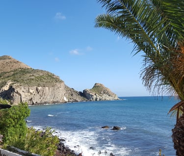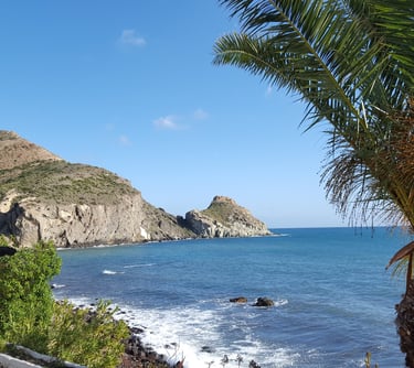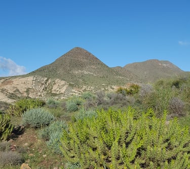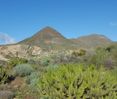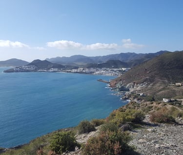 San Jose is within the Cabo de Gata-Nijar Natural Park. It contains the Sierra del Cabo de Gata mountain range, including the highest peak El Fraile. The coastline is rugged, with several small coves and sandy beaches. Offshore there are coral reefs and rocky islands. Part of the sea area is a marine nature reserve. There is also an area of salt flats. The climate is dry, with warm temperatures all year. The average annual temperature is 19.8C and average annual rainfall 160mm.